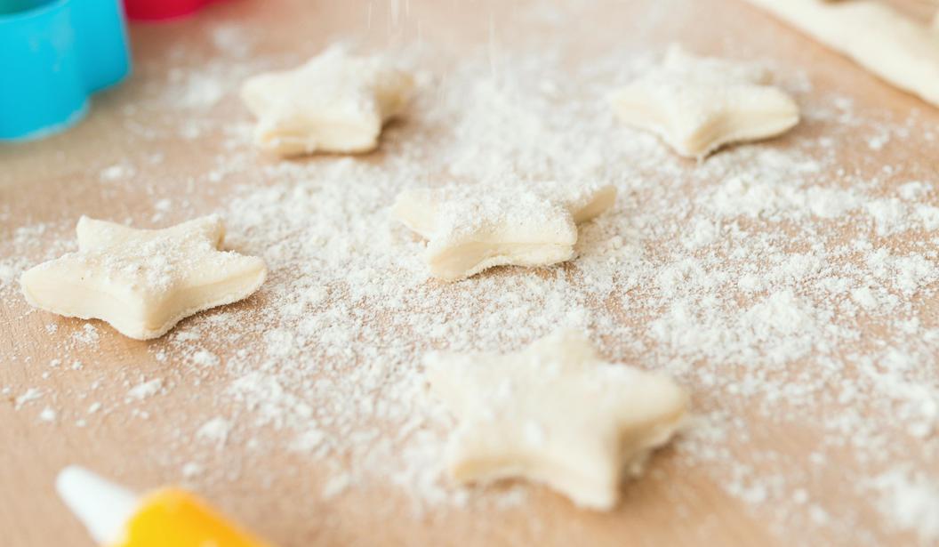 Flatten the dough with a rolling pin and create your shapes with cookie cutters or your hands.
